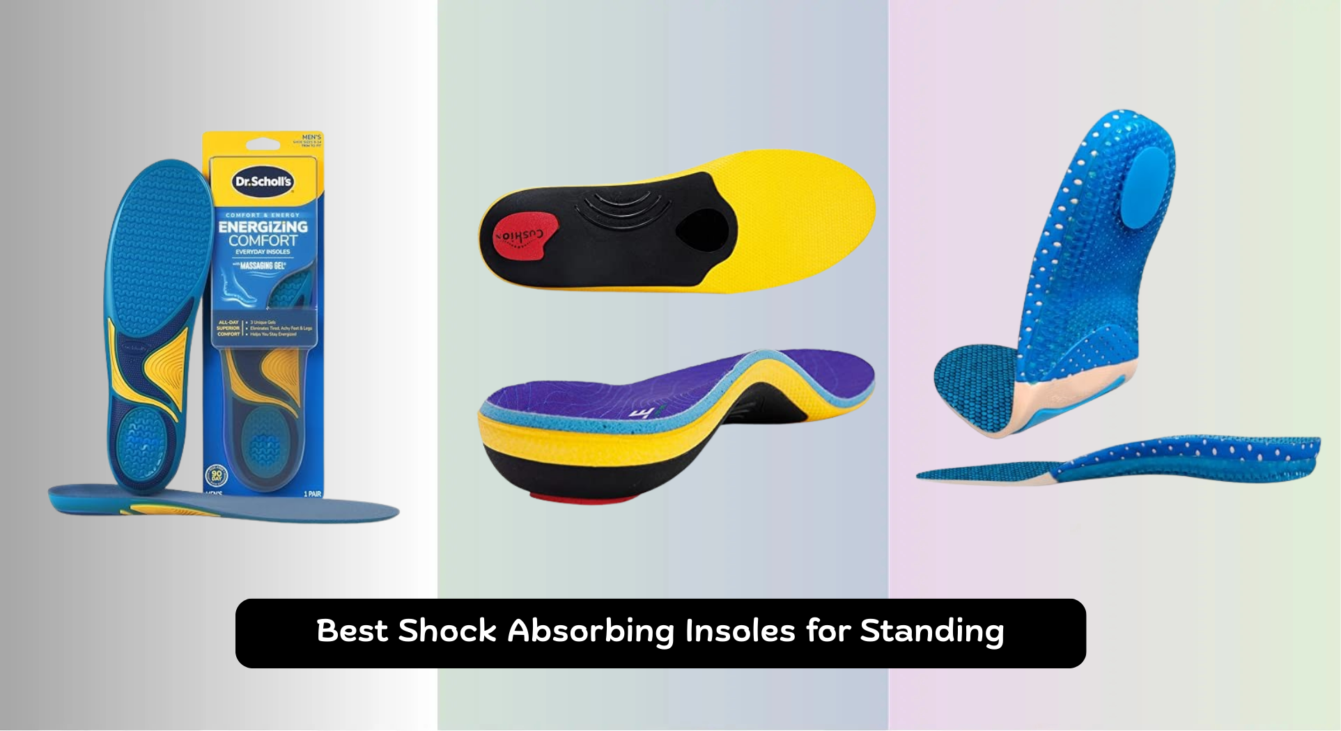 | Dr. Scholl’s Work All-Day Comfort Insoles | Best Overall | All-day comfort, eliminates tired feet, energizing | Moderate | Massaging Gel Technology | Polygiene StayFresh Technology | $20-30 |