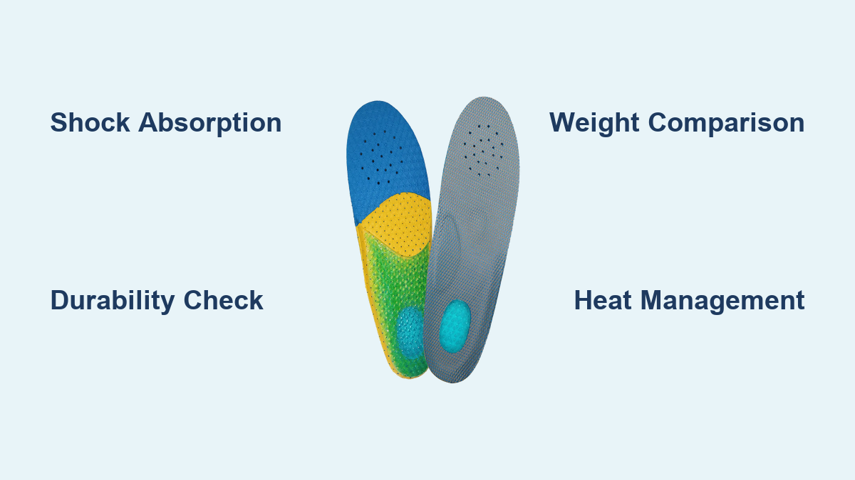 - Poron® Foam: High-density polyurethane; durable, shock-absorbing; used in Prolab and custom orthotics